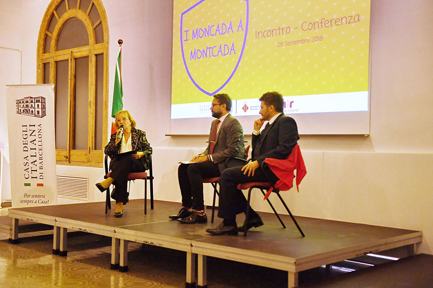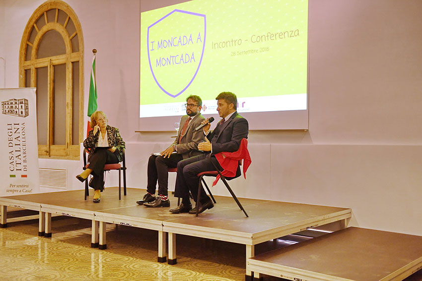 Alla conferenza hanno partecipato Danilo Moncada Zarbo di Monforte, discendente della famiglia, e Mercedes Duran, Direttrice del Museu Municipal di Montcada i Reixach, I saluti introduttivi sono stati a cura del Presidente della Casa degli Italiani, Mirko Scaletti, e dell'Alcaldesa di Montcada i Reixach, Laura Campos Ferrer.