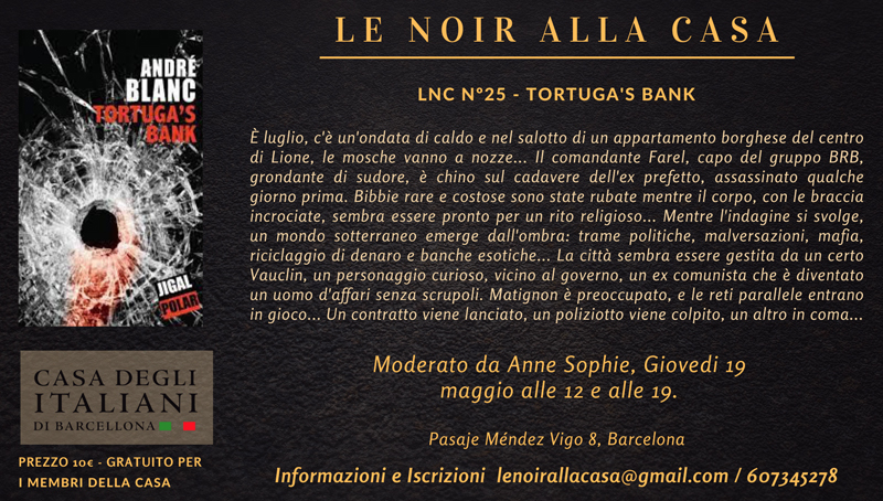 El dijous 19 de maig, a les 12 i 19, Le Noir torna a la Casa amb la novel·la: "El banc de la Tortuga" d'André Blanc.
