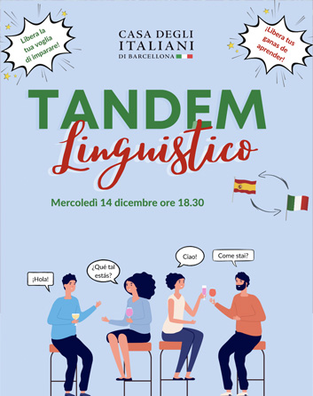 Dimecres 14 de desembre de 18 a 20.30 h, allibera les ganes d'aprendre gràcies al Tàndem Lingüístic de la Casa degli Italiani!