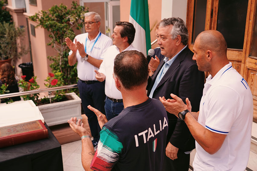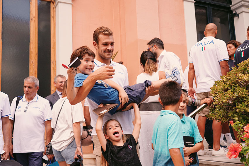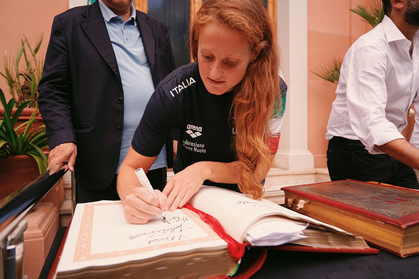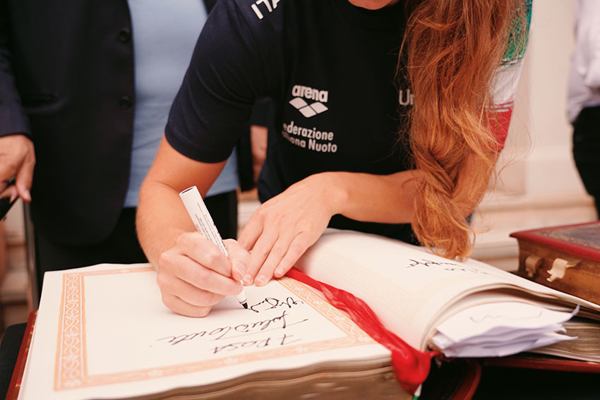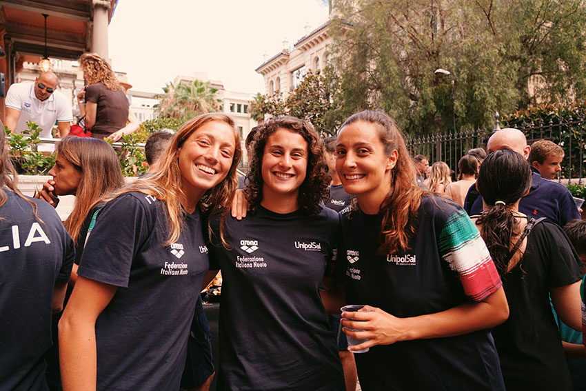 Nel corso della serata le squadre, accompagnate dai rispettivi allenatori, Sandro Campagna e Fabio Conti e da Paolo Barelli, Presidente della FIN e della LEN, hanno ringraziato i connazionali presenti per il caloroso tifo mostratogli nel corso delle fasi a gironi del Campionato Europeo - che ricordiamo hanno visto le due squadre ottenere incredibili risultati - hanno concesso autografi e foto a tutti i loro fan, dai più piccoli ai più grandi e, infine, come da tradizione, hanno firmato il Libro d'Onore della Casa degli Italiani.