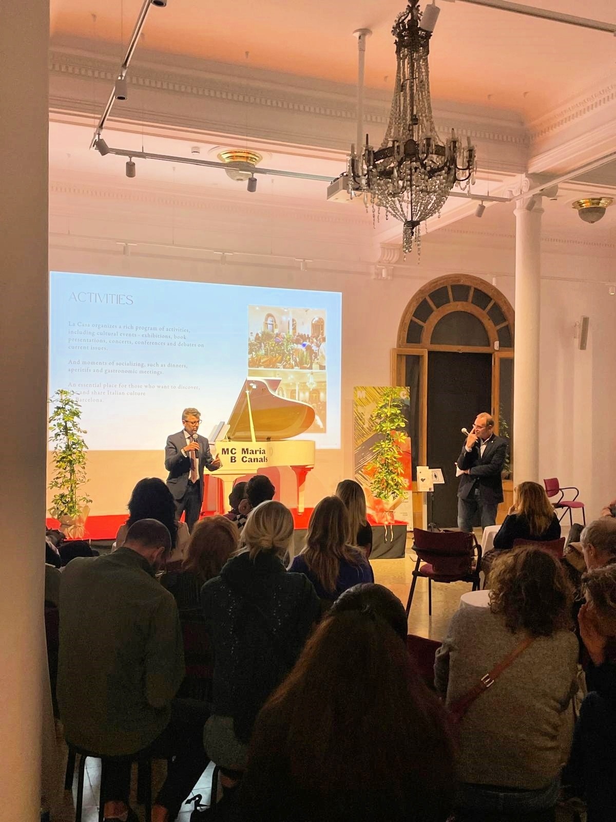 Per concloure la trobada en un ambient de convivència, el mestre i compositor Andrea Catino ens va encantar amb una actuació en directe, mentre els participants van poder brindar amb una copa de prosecco, tancant així la vetllada en nom de la cultura, la música i l'amistat.