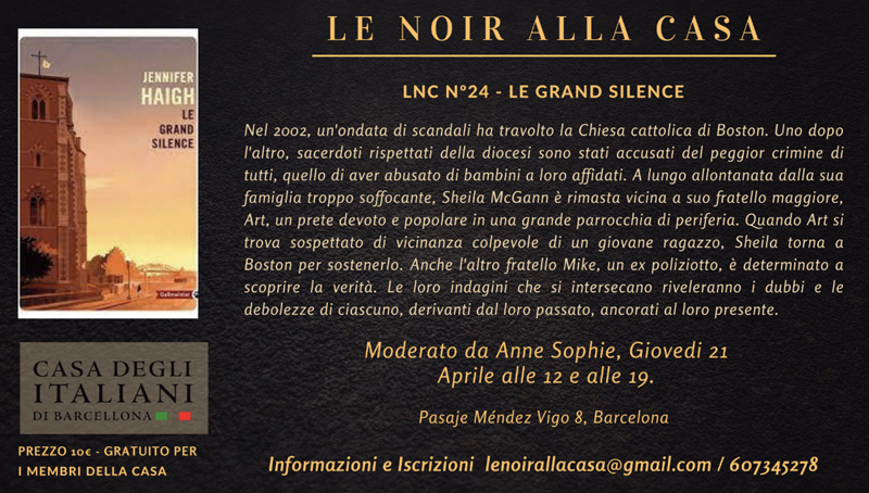 El jueves 21 de abril, a las 12 ya las 19, Le Noir vuelve a la Cámara con la novela: “Le Grand Silence” de Jennifer Haigh.