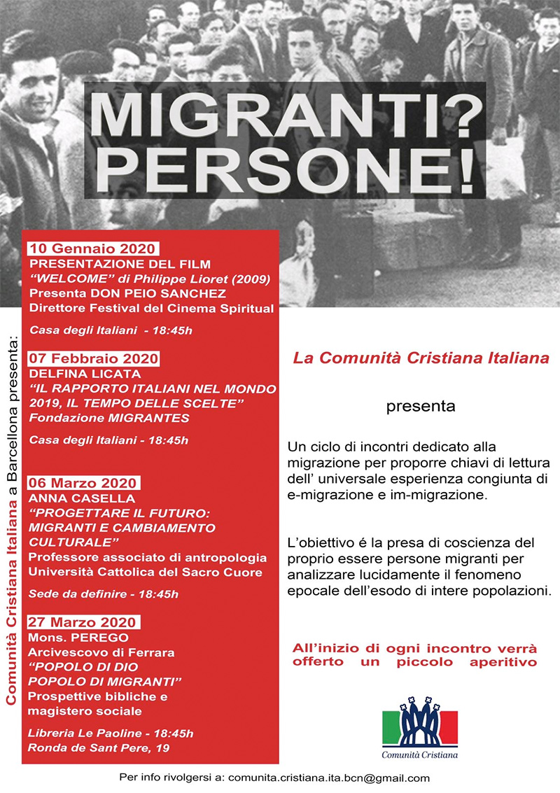 Anche quest'anno la Comunitá Cristiana Italiana propone una serie di incontri per riflettere insieme, alcuni dei quali si terranno alla Casa degli Italiani.