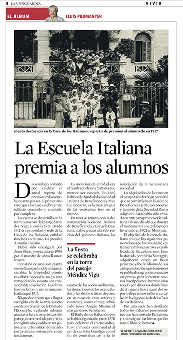 La Escuela Italiana premia a los alumnos Articolo de La Vanguardia “La Escuela Italiana premia a los alumnos”, scritto da Lluís Permanyer. La Vanguardia (3)Scarica l’articolo