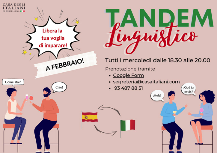 Tots els dimecres de 18 a 20.30 h, deixa anar les teves ganes d'aprendre gràcies al Tàndem Lingüístic de la Casa degli Italiani!