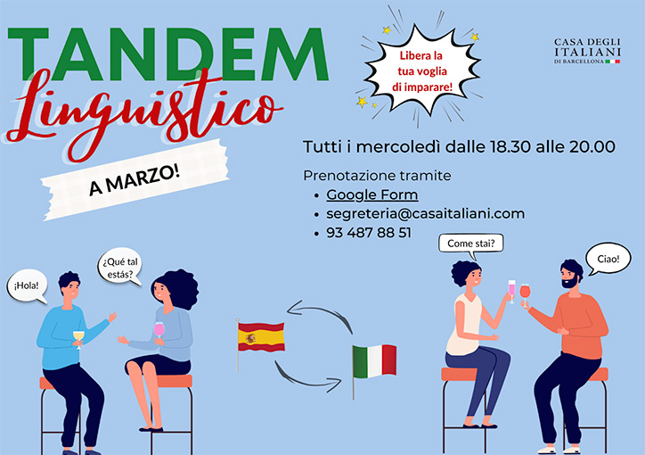 Tots els dimecres de 18 a 20.30 h, deixa anar les teves ganes d'aprendre gràcies al Tàndem Lingüístic de la Casa degli Italiani!