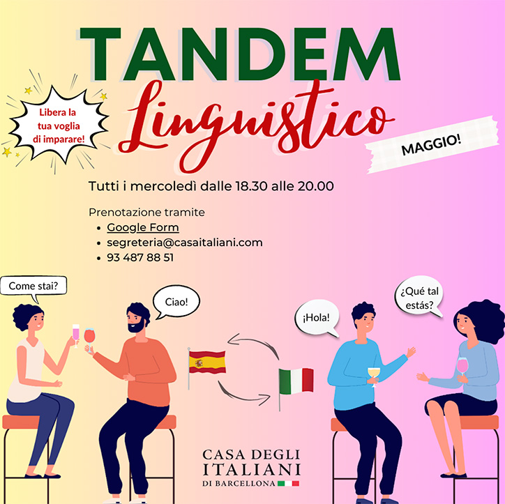 Tots els dimecres de 18 a 20.30 h, deixa anar les teves ganes d'aprendre gràcies al Tàndem Lingüístic de la Casa degli Italiani!
