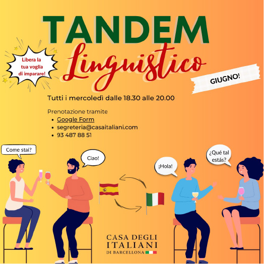 Tots els dimecres de 18 a 20.30 h, deixa anar les teves ganes d'aprendre gràcies al Tàndem Lingüístic de la Casa degli Italiani!